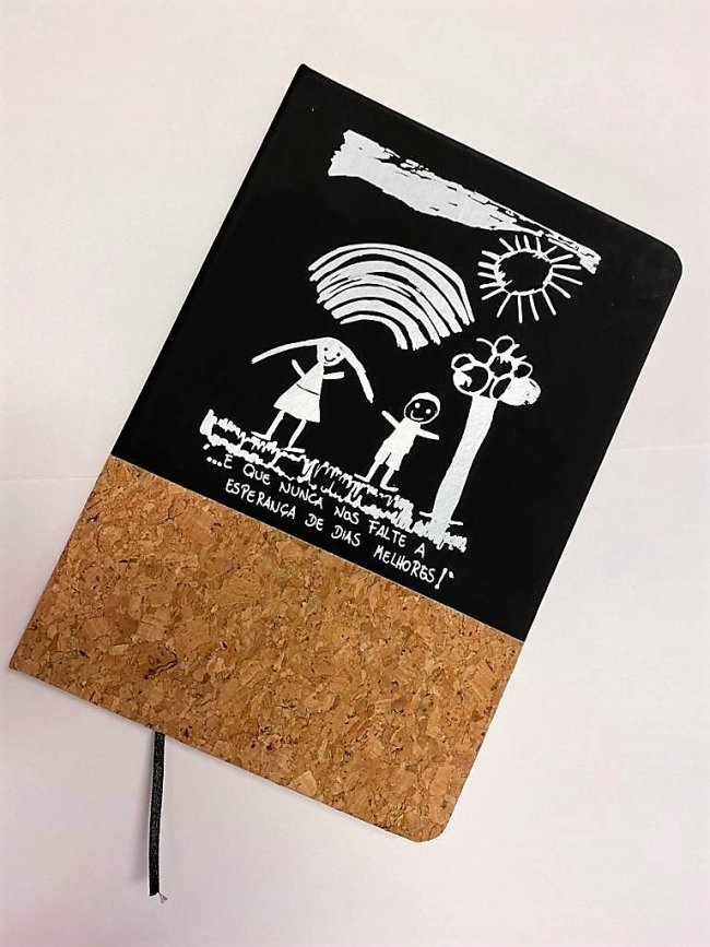 Nesta campanha estão disponíveis AGENDAS 2021 (Com argolas e capa em cortiça, tamanho A5. Valor: 10,00€) e Cadernos de Apontamentos (Com capa preta com cortiça, tamanho A5. Valor: 6,00€). Quer das agendas, quer dos cadernos existem dois modelos diferentes, ilustrados com desenhos das crianças de Creche e de Jardim (ver em anexo).