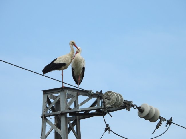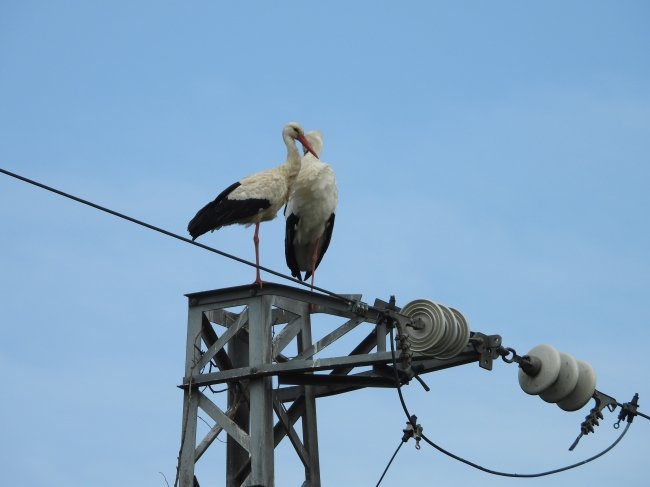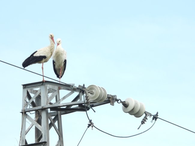 Surpreendemente, este ano, a EDP privatizada decidiu colocar umas estruturas mecânicas no topo desse poste (uma espécie de espanta-pássaros, como as apelidou a Corema), no intuito de impedir que estas aves de grande porte e raras na nossa região voltassem a utilizá-lo, sob o alegado pretexto de poderem causar cortes no fornecimento de energia, caso os paus que constituem o ninho tocassem simultaneamente em dois fios.