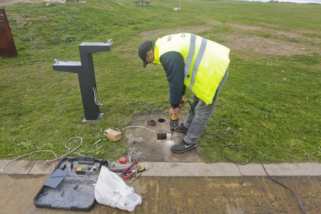 Envolvente enriquecida com mesas de piquenique e instalado um bebedouro adaptado