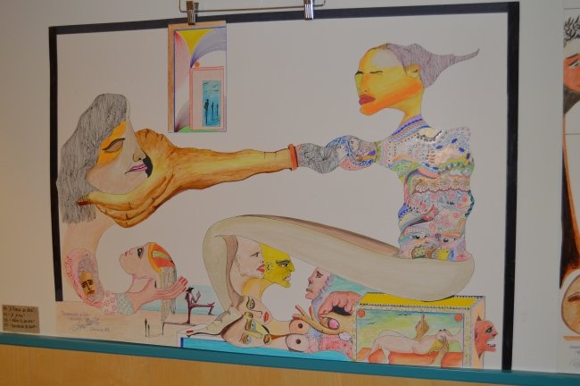Mário Rebelo de Sousa expõe até final de Maio, 23 trabalhos de desenho, pintados em cartão.