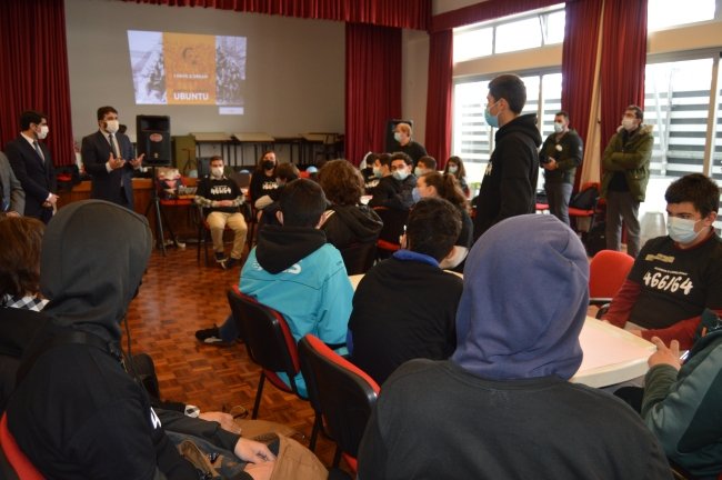 Nesta visita a Caminha, Tiago Rodrigues deslocou-se ainda ao salão nobre dos Bombeiros Voluntários de Caminha, onde decorreu durante uma semana o projecto Ubuntu, envolvendo cerca de trinta alunos da EBS de Caminha, todos (incluindo os professores) envergando t-shirts negras com o número de prisão que tinha sido determinado pelo regime de apartheid sul-africano a Nelson Mandela, quando este vulto político e da cultura africana esteve preso durante 20 anos por pugnar pelos direitos dos seus conterrâneos e na luta contra o segregacionismo e racismo.