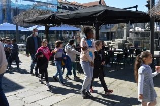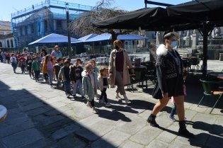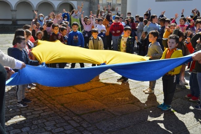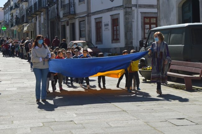 Uma bandeira com as cores da Ucrânia abria o desfile de alunos e professores da Escola Básica de Caminha que partiram na manhã da passada Quinta-feira, desde este estabelecimento de ensino até à Praça Calouste Gulbenkian, em frente aos Paços do Concelho, gritando "Não à Guerra", ao completar-se um mês da invasão deste país pelas tropas russas.