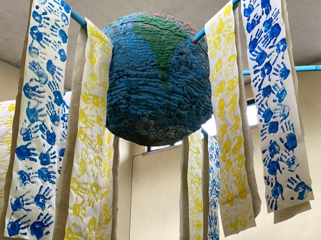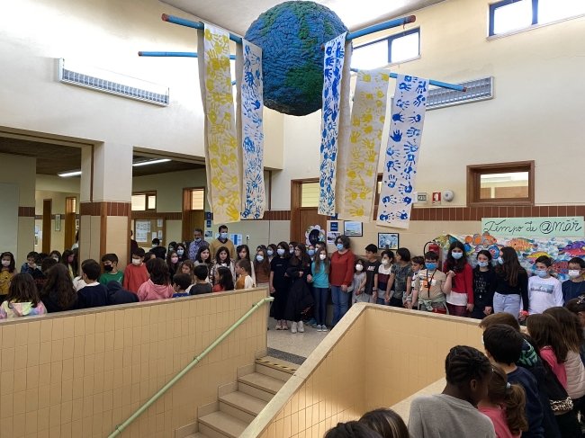 Perante a catástrofe humanitária e o desprezo pela vida humana com que, diariamente, somos confrontados através da comunicação social, os alunos do 1CEB da EBS do Vale do Âncora deram nova vida a uma instalação artística que se encontra suspensa no estabelecimento de ensino há já vários anos.