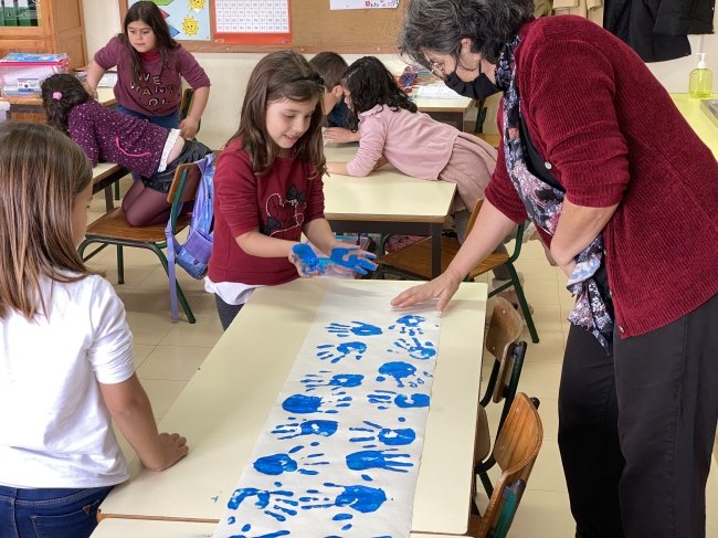 Junto à mesma e acompanhados de alunos de uma turma do 2CEB, na tarde deste dia 24 de março escutaram o hino da Ucrânia e, de mãos dadas, fizeram um minuto de silêncio em memória de todas as vítimas deste conflito. Neste interminável minuto, perpassou pelas mentes de todos o sofrimento de tantas crianças aterrorizadas pela violência incompreensível que as rodeia, o sofrimento de tantas mulheres, de todas as idades, que tentam fazer um sorriso e transmitir segurança aos seus filhos, calando, no mais fundo de si, as lágrimas e o desespero sentidos, o sofrimento de tantos homens ucranianos, de todas as idades, que se separaram das suas famílias e amigos para pegarem em armas e defenderem o seu país, o sofrimento de tantos soldados russos e das suas famílias que não concordam com a invasão da Ucrânia, mas temem as represálias de um poder ditatorial.