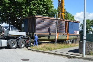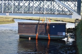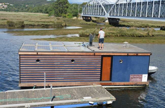 Uma casa flutuante foi instalada na passada Quarta-feira na parte exterior da plataforma existente perto da ponte ferroviária sobre o Rio Coura, destinada a exploração turística.