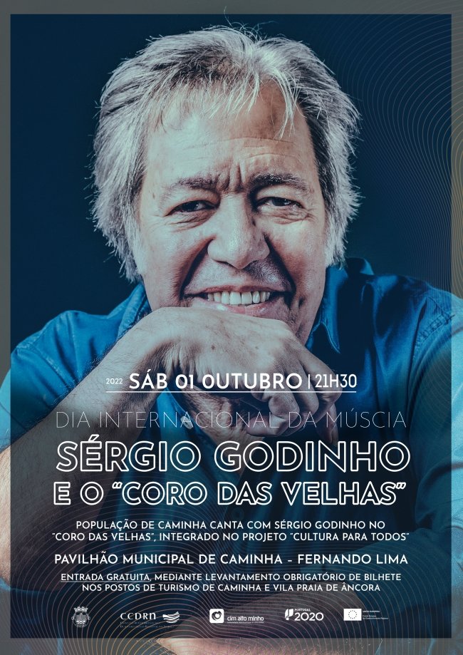 Caminha vai comemorar o Dia Mundial da Música com Sérgio Godinho e o "Coro das Velhas". Cerca de uma centena de pessoas, de todas as freguesias do concelho, maioritariamente idosas, vão juntar-se a um dos maiores cantautores portugueses para um grande espetáculo: Os ensaios estão a decorrer e as vozes estão cada vez mais afinadas, quase prontas para subir ao palco do Pavilhão Municipal de Caminha - Fernando Lima, pelas 21h30. Será um "Coro das Velhas" muito especial e prevê-se "casa cheia" A entrada é gratuita, mediante levantamento obrigatório de bilhete nos Postos de Turismo de Caminha e Vila Praia de Âncora, já a decorrer.
