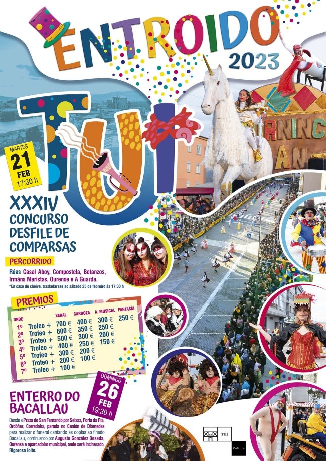 O martes (7/2) abriu o prazo de inscrición para os grupos e comparsas que desexen participar no desfile concurso. As bases veñen publicadas hoxe no BOPPO. A inscrición realizarase presentando o modelo de solicitude, xunto á documentación requirida, dende mañá martes, 7 de febreiro, até este xoves, 9 de febreiro, ás 14 h a través da sede electrónica do concello de Tui.