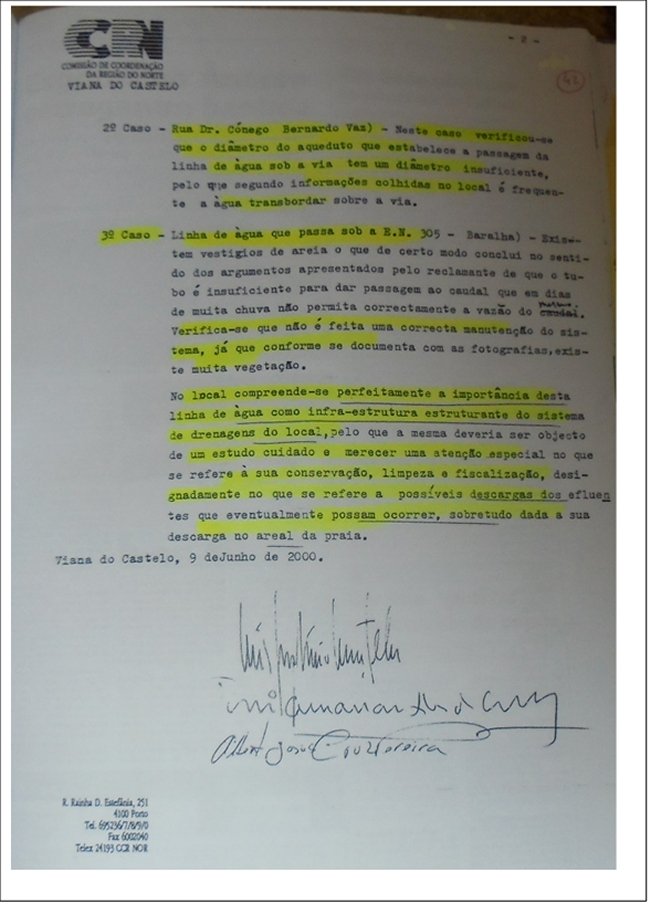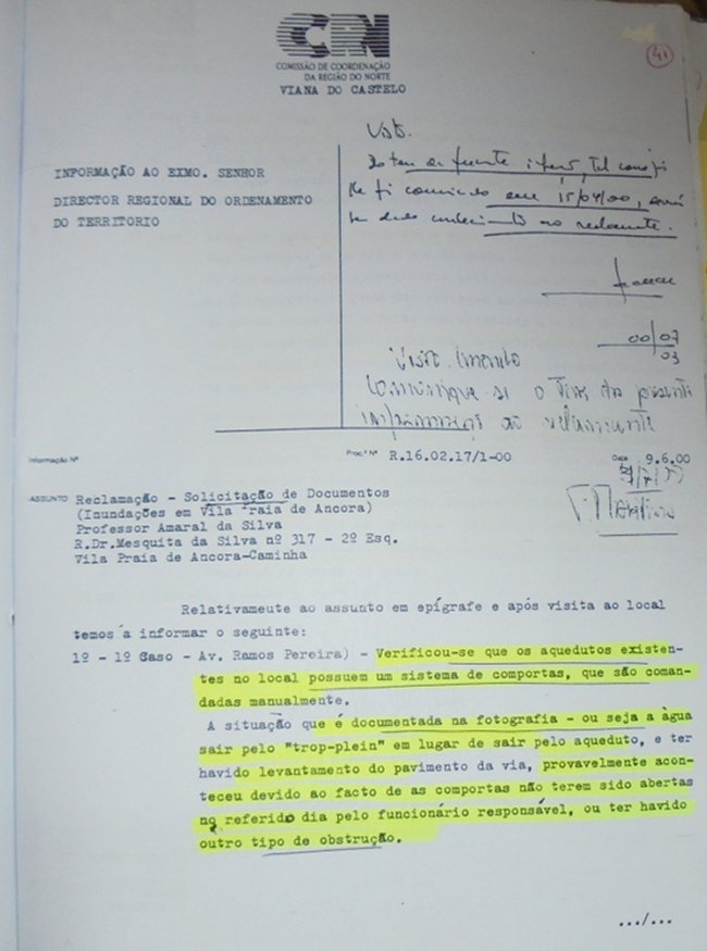 No entanto em 2000, houveram novas inundações sendo de imediato expostas tecnicamente as causas e os cuidados a ter em Vila Praia de Ancora, que o CCRN, considerou importantes , conforma o referido nos fotos anexos.