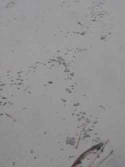 Inúmeras partículas difusas, variando entre os 2 e os 10 centímetros podiam ser vistas ao longo do areal, formando linhas descontínuas, algumas semi-encobertas pela areia, levando a crer que já teriam sido lançadas à costa pelo mar, durante a preia-mar da madrugada de ontem.