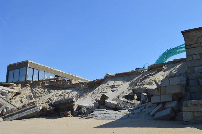 Nesta maré de acosso à proteção granítica existente há mais de 80 anos, recordamos como ondas de mais de 15 metros resultantes das tempestades de 2011 e 2014, quebraram o parapeito do paredão, como que prenunciando a desgraça verificada este ano.