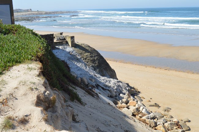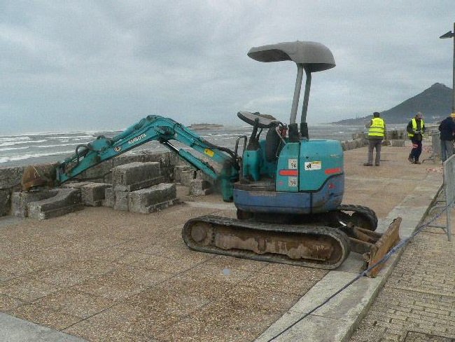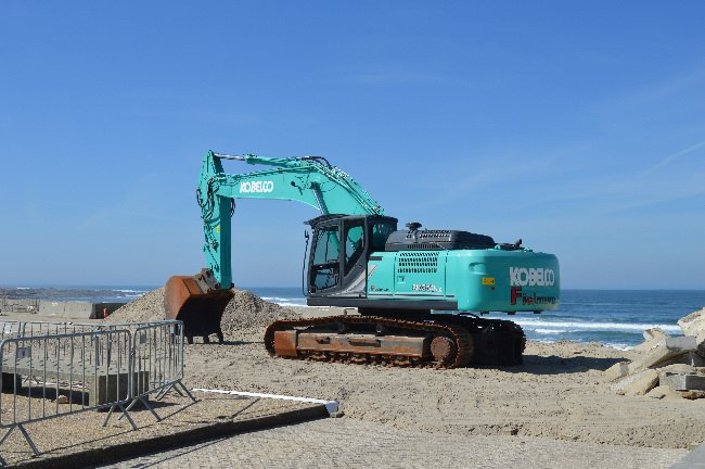 Uma primeira intervenção de emergência que viabilize a normalidade possível na época balnear que se aproxima, já foi iniciada no paredão da praia, com a colocação de um geotêxtil que permite a movimentação de máquinas pesadas sobre o parque de estacionamento, presentemente com o acesso vedado por razões de segurança.