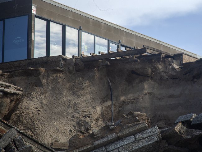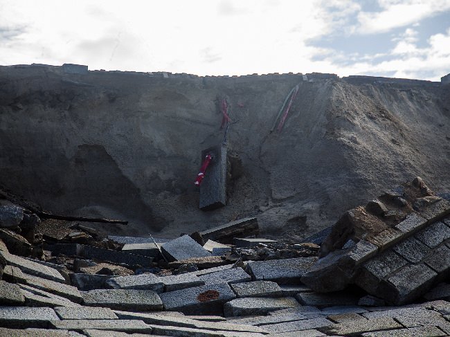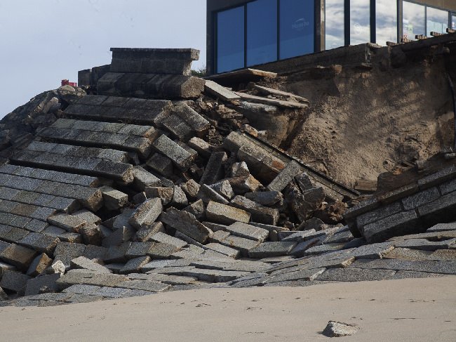 Insistiu na necessidade de reforçar com o enrocamento e depósito de areia na base do paredão, de modo a evitar que ele fique "descalço e colapse", como sucedeu neste inverno, mas advertiu que aquela "ferida" (buraco resultante do derrube do paredão) permanecerá nesta época balnear.