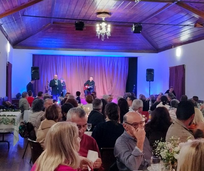 O jantar, cuidadosamente preparado pelas funcionárias da instituição, aliado ao espetáculo musical, contribuiu para uma noite de celebração e partilha entre gerações.