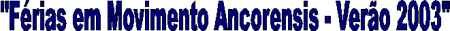 Assim, a partir de 01 de Julho até 30 de Agosto, será desenvolvido mais um projecto "Férias em Movimento - Ancorensis Verão 2003", enquadrado no Programa Férias em Movimento financiado pelo I.P.J. - Instituto Português da Juventude no qual acolherá jovens ao longo do dia, sendo assegurando o transporte casa-escola, sempre que o número de inscritos, por localidade, o justifique.