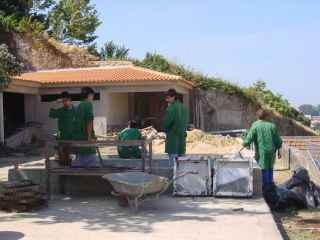 Segundo nos referiu José Manuel Presa, coordenador do curso de Condução de Obra, havia necessidade de erguer um espaço aberto mas protegido com telhado nas traseiras do edifício-sede, onde pudessem ser ministradas as aulas práticas durante o Inverno, tendo aproveitado os materiais utilizados na formação e a mão de obra dos próprio alunos.