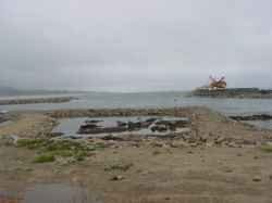 O extremo final do molhe norte apresenta irregularidade na colocação dos blocos de betão, um factor considerado sem importância pelos responsáveis da obra.