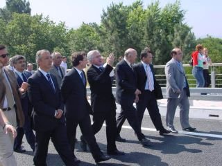 A cerimónia sem carácter oficial, devido ao dia de luto decretado pelo Governo português, motivado pelo falecimento do primeiro candidato socialista às eleições do Parlamento Europeu que se realizam amanhã (Domingo), iniciou-se à entrada do tabuleiro, no lado português, após os que os dois alcaides, acompanhados pelo presidente do Instituto de Estradas de Portugal e demais responsáveis por este instituto, e pelos seus homólogos espanhóis, se dirigiram quase até ao outro extremo, detendo-se junto a uma lápide com o nome da ponte e a bandeiras espanhola e portuguesa, posando de seguida para os fotógrafos.