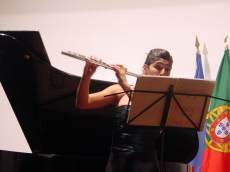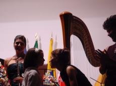 Concluída a sua intervenção inicial já habitual, passou a apresentar as convidadas do serão, a flautista Vera Morais e a harpista Andreia Marques, tendo esta última o sortilégio de ser acompanhada da sua professora em Milão e que se encontrava casualmente no norte de Portugal, mostrando-se desde logo receptiva a participar no concerto, proporcionando juntas um dos momentos mais aplaudidos da noite.