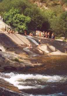 Já instalados, deslocamo-nos até às cascadas onde podemos divertirmo-nos escorregando pelas grandes pedras.