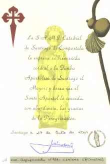 Apesar da actividade estar a chegar ao fim, ainda tínhamos em falta dois rituais obrigatórios para quem faz " Os caminhos de Santiago " : conseguir a "Compostelana" e entrar pela Porta Santa e abraçar o apostolo Santiago.