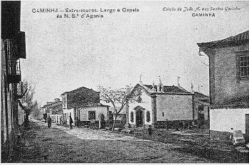 O Largo da Srª. da Agonia deve o seu nome à Capela da Srª. da Agonia, fundada em 1766 e concluída em 1774. Foi construída pela Irmandade do Senhor dos Mareantes por solicitação dos pescadores que tinham necessidade de assistirem muito cedo à missa e evitavam assim a necessidade de se deslocarem a outros templos mais afastados. Antes da construção da capela, o largo era denominado do Calvário, um espaço já "fora de portas" porque no exterior da terceira e última ordem de muralhas caminhenses. Da Porta do Cabo subsistem ainda hoje duas colunas de granito à entrada do Largo da Srª. da Agonia.