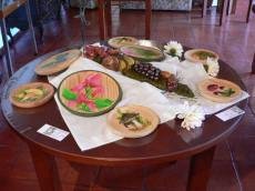 Simultaneamente, algumas dezenas de peças de cerâmica, artesanato, restauro e modelagem pertencentes ao Centro de Arte de Nigrán, MA=TE, dirigido por Maria Teresa, podem ser também apreciadas até final deste mês de Outubro, nesta unidade hoteleira lanhelense.