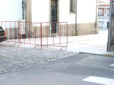 Inexistência de solução para impedir o trânsito desde a R. Miguel Bombarda, recorrendo-se à improvisação, com recurso à colocação de grades provisórias