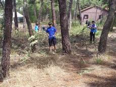 Dedicamos uma hora de trabalho ao campo em que consistia separar galhos grossos da rama, a madeira servia para alimentar a caldeira de aquecimento da agua dos duches.