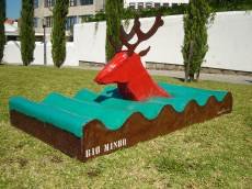 Longe dessas introspecções está o cervo protector do rio Minho. Navegando com a cabeça de fora, numa aparente dificuldade em manter o rumo, parece querer dizer que tanto a sua descendência como o futuro daquele troço internacional de água atravessam o problema comum de preservação face às investidas desmedidas do ser humano.