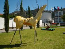 Também está por lá o cervo que aspira a tornar-se um rival das alturas de qualquer ave primaveril. Tem asas feitas de arame e um olhar perdido no firmamento que, por estes dias, "atira" fragmentos solares em doses razoáveis. Pode ainda assumir a condição de cervo-anjo, resvalando a nossa intuição para um ponto de interrogação: provocação pura e dura ou a simples constatação que os animais podem atingir estatuto celestial.