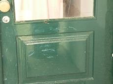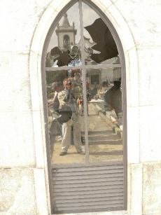 Igualmente um vidro da casa paroquial foi partido (o pároco não vive nela) e, com os restos dos vidros, rasparam a porta do rés-do-chão do edifício.