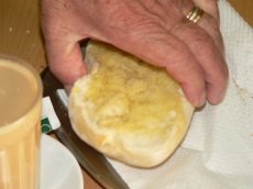 Alcides Amorim reconheceu que o pão (do tamanho de duas carcaças) e a manteiga actuais não são tão bons como quando eram feitos artesanalmente, numa época em que se gastava uma arroba (!) de manteiga, conforme recordou Isabel Ribeiro, viúva de outro dos proprietários da padaria/taberna - o João da Cova da Onça.