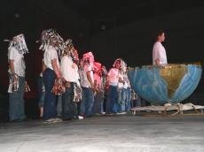 Água como som de fundo proveniente da cachoeira criada por detrás do palco esteve sempre presente nas interpretações e presenças em palco, a par de imagens de todos ao quadrantes geográficos da ribeira Minho projectadas numa tela lateral, pretenderam estabelecer uma ligação permanente entre os assistentes que abarrotaram o pavilhão municipal de Caminha e o rio que servia de ponte a essa proximidade que o título do espectáculo protagonizava.