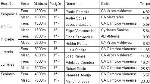 No escalão de Benjamins, os atletas mais jovens em competição chegaram em primeiro lugar à meta Paula Gameiro, dos Arcos de Valdevez, e André Sousa do Mazarefes.