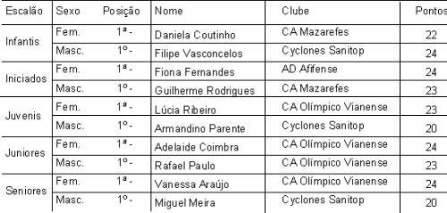 Classificação do Circuito de Preparação de Corta-Mato 2008, após 3 etapas.