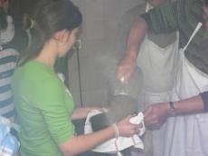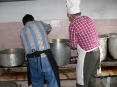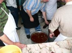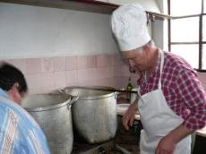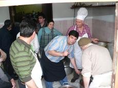 São cerca de cinco horas de volta dos panelões cedidos pelos Estaleiros de Viana do Castelo, nos quais se condimentam as iguarias apreciadas, enquanto que os ajudantes às mesas, um grupo de jovens da freguesia, almoçam previamente e se preparam para servir o apetecido repasto.