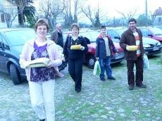 Logo a partir do meio-dia, começam a chegar os vilarmourenses transportando nas suas cesteiras os talheres, bebidas e sobremesa, porque quanto ao resto, é só esperar que comece a distribuição pelas mesas.