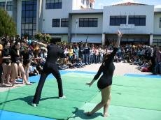 Na sequência do grupo de bombos, o Grupo Gímnico Ancorensis apresentou dois esquemas gímnicos que antecederam a leitura da declaração de Shuman, uma referência histórica ao dia que se institui como dia da Europa.