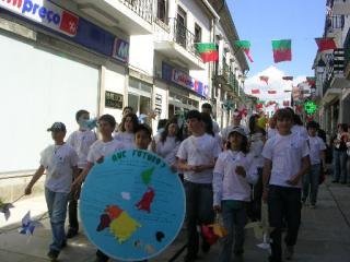 No passado dia 13, alunos do 8ºA e 8ºB, realizámos uma visita de estudo à Casa da Aldeia, uma quinta biológica em Loivo (Cerveira), no âmbito do programa Eco-Escolas. Fomos acompanhados pela monitora Rute Solange, que se encarregou de nos formar, orientar e guiar. E aproveitámos bem: desde uma pequena "aula" sobre agricultura biológica, a apanha e "desfolhada" de favas, a compostagem dos restos. Pudemos vestir a pele de burriqueiros, durante uma volta em cima do "Benjamim" e fazer o nosso próprio pão com chouriço. Após umas festas às duas cabras, assistimos a um inesperado espectáculo oferecido pelo mergulho dos patos, seguido de uma visita aos vários animais da quinta (galinhas, perus, coelhos, porcos, ovelhas, entre outros), observámos um moinho de água a produzir farinha de milho, assim como uma apresentação de uma banda desenhada sobre a compostagem. No final da refeição partilhada cantámos os parabéns à Iolanda que comemorava o seu 15º aniversário, e saboreámos o delicioso bolo que a avó ofereceu. Só foi pena termos de regressar… Renata Magalhães - 8.ºB Eco Escolas e EB 2,3/S de Caminha festejaram bem a grande semana do arraial do Agrupamento de Escolas Coura e Minho.