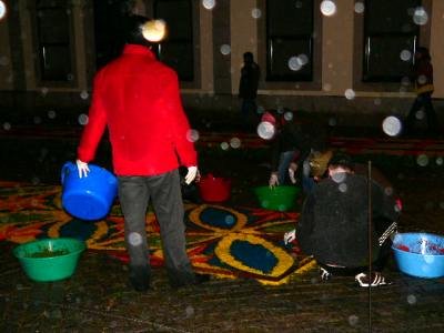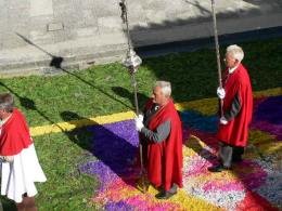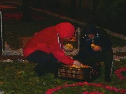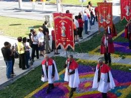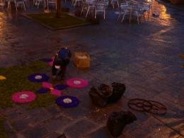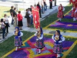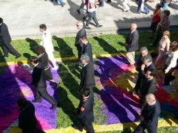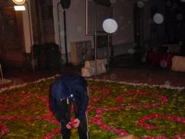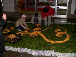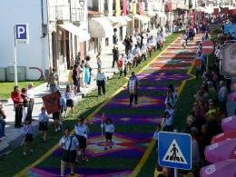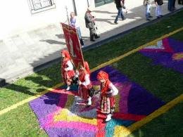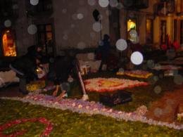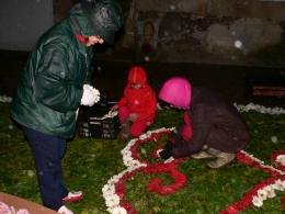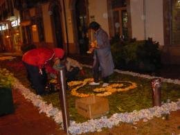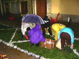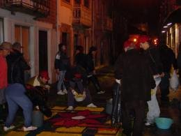 Foi árdua a tarefa dos moradores de Caminha e Vilarelho na montagem dos tapetes florais durante a madrugada do Dia do Corpo de Deus, fustigados por uma chuva miudinha e contínua que chegava até aos ossos.
