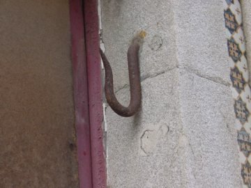 Já desaparecido (e mesmo proibido) o hábito de exibir à entrada dos talhos os animais abatidos para comercialização e cobertos por panos brancos, nomeadamente na Páscoa, restam quatro ganchos nas ombreiras de dois desses antigos estabelecimentos da vila de Caminha.