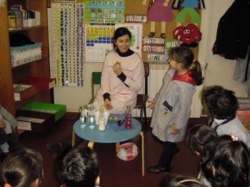 Hoje recebemos a visita da mãe da Dani. A mãe da Dani é enfermeira no Hospital em Viana do Castelo. Ela trouxe muitos instrumentos e materiais utilizados pelos enfermeiros no Bloco, serviço do hospital onde trabalha. Ficámos a perceber para que servem, como se usam e a sua importância para o bem-estar das pessoas. Foi uma conversa muito divertida em que usámos alguns desses instrumentos!