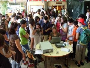 No âmbito do "Ciência na Escola" - Prémio Fundação Ilídio Pinho, este ano com o tema geral "As Artes da Física", o projecto da Escola E.B. 2,3/S de Caminha designado por "Timbre: A Física na Música", está prestes a concluir-se em pleno. A Actividade A.1. foi realizada pelas 4 turmas do 8.º ano de escolaridade, tendo obtido uma grande adesão por parte dos alunos: trouxeram várias guitarras clássicas, flautas de bisel, violinos, harmónicas, baterias, uma flauta transversal, um berimba, etc. Gravaram-se sons de cada instrumento musical correspondendo à nota Lá, além de várias vozes de alunas e alunos cantando a nota "Lá". De seguida procedeu-se à análise espectral (Fast Fourier Transform) para avaliar o respectivo timbre. Foi divertido verificar qual a nota musical que cada aluno(a) realmente cantou. Havia gente razoavelmente afinada, mas também havia pessoal completamente desafinado! No seguimento, os alunos fizeram uma pesquisa sobre a origem, a invenção e evolução histórica de cada instrumento musical. Para finalizar esta actividade elaboramos uns cartazes, que serão expostos na Galeria Municipal durante o XVIII Arraial Minhoto, nos quais constam um resumo descritivo de cada instrumento musical, uma fotografia, um gráfico de análise espectral e o timbre (forma da onda sonora) propriamente dito. A não perder. Na Actividade A.2. procurávamos vozes com naturais aptidões para o canto. Aos alunos de Educação Musical do 8.º A foi proposto que cantassem um pequeno trecho musical, muito simples, logo após ouvirem esse trecho a ser tocado por um violão. Gravamos os respectivos sons e determinamos, por análise espectral, quem realmente tinha cantado as notas musicais que tinham ouvido. A maioria conseguiu cantar o referido trecho musical com boa afinação tonal. Outros, embora esforçados, revelaram uma queda natural para desafinarem!... Ao mesmo tempo procedemos à análise da riqueza harmónica de cada voz. Para nosso espanto concluímos que temos alunos e alunas que cantam um Ré (nota fundamental) com mais de 18 harmónicos em simultâneo! Incrível. Finalizamos esta actividade com a entrega de Diplomas de Participação/Informação para os Encarregados de Educação, nos quais fizemos a descrição da actividade, demos conta da afinação/desafinação tonal dos seus educandos e apresentamos a análise espectral de cada nota cantada pelo aluno. Na manhã de sexta-feira, dia 21, fizemos a Actividade A.3 a que chamamos "Concurso da Gritaria"! Não, não queríamos descobrir quem tem a voz mais poderosa da Escola. Procuramos e encontramos a voz mais aguda da nossa Escola. À partida, as meninas teriam alguma vantagem neste concurso pois têm, em média, cordas vocais capazes de vibrarem mais vezes por segundo que os rapazes, normalmente detentores de vozes mais graves. Ao fim de 30 minutos de gritaria, gargalhadas, boa disposição e libertação de algum stress acumulado ao longo do ano lectivo, o frequencímetro descobriu as vozes mais agudas: duas meninas nos 2.º e 3.º lugares; um rapaz no trono! É verdade! Atribuídos os prémios respectivos; fotografias da praxe e já está. Concluímos as actividades previstas com êxito, tendo a consciência que a Ciência e o Som ficaram de mãos mais bem dadas nesta Escola. Para os pais, irmãos, avós e amigos mais curiosos aqui fica o endereço electrónico do nosso blogue: www.timbrenafisica.blogspot.com. Consultem! Professor Agostinho Oliveira Geração Copy-Paste Estudo sobre literacia apresentado em Caminha Os resultados de uma importante investigação portuguesa sobre literacia informacional vão ser apresentados em Caminha no dia 7 de Junho, pelas 21.30 h, no Auditório da EB 2,3/S de Caminha, numa iniciativa da Biblioteca Escolar integrada no XVIII Arraial Minhoto do Agrupamento de Escolas Coura e Minho. O estudo será apresentado pela Professora Doutora Maria Fernanda da Silva Martins, Professora Auxiliar da Faculdade de Letras da Universidade do Porto onde rege actualmente as disciplinas de Psicologia Cognitiva e Metodologia de Investigação do Curso de Jornalismo e Ciências da Comunicação. Licenciada em Psicologia pela Universidade do Porto, Mestre em Ciências da Educação pela Universidade de Aveiro e Doutorada pela Universidade do Minho com a tese "A influência das emoções no desempenho cognitivo: ira e processamento de informação", esta docente universitária é orientadora de mestrados e doutoramentos em Portugal e participa regularmente em encontros e seminários internacionais. Como investigadora, tem participado em diversos projectos de pesquisa, nomeadamente no "Projecto de investigação em desenvolvimento, aprendizagem, currículo e supervisão"; "Cognição e aprendizagem: conceptualização, avaliação e promoção"; "Estudo do processamento de informação visual e auditiva: contributos neuropsicológicos”; "O Uso de Estratégias Metacognitivas pelos Alunos de Graduação Universidade do Porto e Universidade Federal da Paraíba (Brasil)”. Recentemente, integrou a equipa interdisciplinar do projecto "A literacia informacional no espaço Europeu do Ensino Superior: estudo da situação das competências da informação em Portugal”, desenvolvido pelo Centro de Estudos das Tecnologias, Artes e Ciências da Comunicação da Faculdade de Letras da Universidade do Porto, cujo coordenador foi o Professor Doutor Armando Malheiro da Silva. Este estudo, que vai agora ser apresentado em Caminha, foi divulgado pela comunicação social sob o nome “Geração Copy-Paste” e visou realizar um mapadiagnóstico do comportamento, expectativas, necessidades e usos da informação nos estudantes do final do Ensino Secundário e do segundo ano do Ensino Superior. Informação da Coordenação da Biblioteca Escolar / Maio 2010 João Pedro Mésseder em Caminha