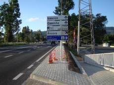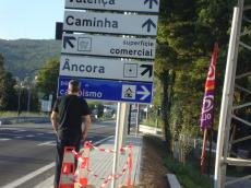 Em Âncora, no sentido sul-norte, colocaram no passeio uma placa com diversas informações como a foto revela, mas que se encontra demasiado baixa, impedindo que qualquer pessoa de estatura mediana passe sob ela, sendo obrigada a desviar-se e a circular pela estrada o que poderá ser um perigo.