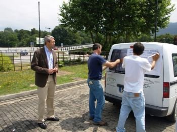 Hélder Barros, vereador da sinalização e trânsito da Câmara Municipal de Arcos de Valdevez, fez questão de estar hoje (9 de Julho) presente durante a colocação de mensagens de sensibilização rodoviária, nos veículos que fazem o transporte escolar dos alunos do concelho.