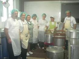 Um grupo de 10 cozinheira(o)s voluntária(o)s afadigaram-se desde a véspera para que tudo estivesse a postos por alturas do almoço, e o que é certo é que à hora marcada, estavam pronta(o)s para iniciar o serviço às mesas.