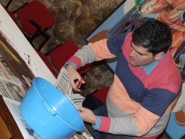 Na acção, que permitiu aos participantes tomar contacto com o mundo da arte, Ricardo de Campos, à medida que ia "construindo" um trabalho em tela com recortes de jornais, respondia às várias questões levantadas pela curiosidade dos presentes.