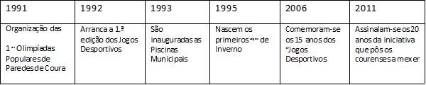 "Os Jogos Desportivos", que este ano comemoram a sua vigésima edição, têm a génese na tentativa de organização das "Olimpíadas Populares de Paredes de Coura", idealizadas pela Câmara Municipal em 1991.