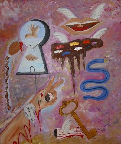 As obras que compõe a exposição são maioritariamente de estilo Surrealista e abordam várias temáticas.