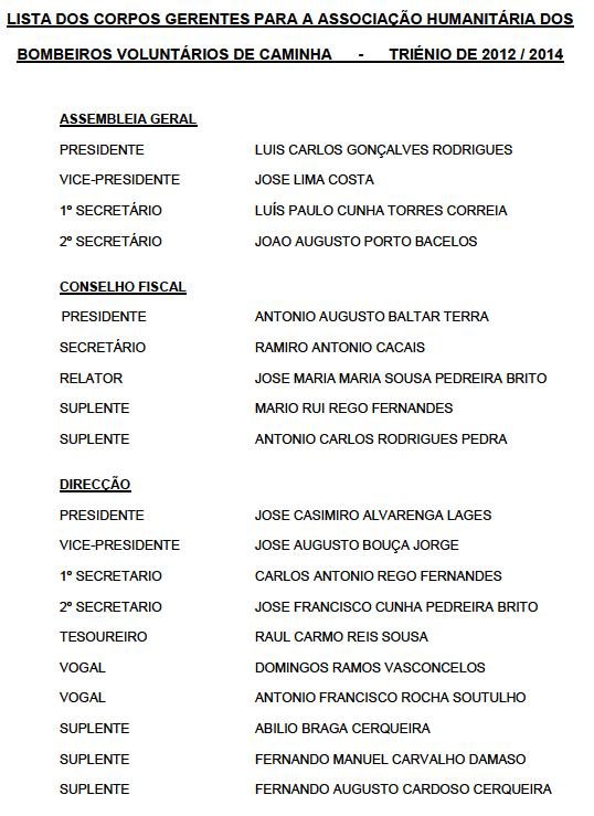No final desta assembleia, foram empossados os novos corpos gerentes da associação para o próximo triénio, ficando assim constituídos: